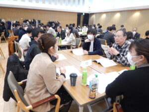 今回は昨年2月と同様に「町田市文化交流センター」にて、総勢77名が参加して中間総括を行いました。